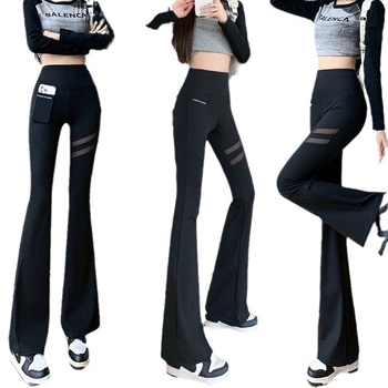 2024 yaz kadın yüksek bel Boot pantolon elastik cep ince örgü popo kaldırma köpekbalığı desen zayıflama etkisi için zayıflama